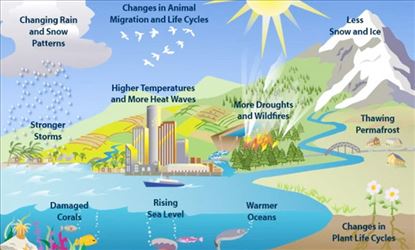 آب و ہوا کا سسٹم اپنی لگ بھگ ساری توانائی سورج سے حاصل کرتا ہے۔ یہ سسٹم ’آوٹر اسپیس‘ کیلئے بھی توانائی دیتا ہے۔ آنے اور خارج ہونے والی توانائی کا توازن اور ماحولیاتی نظام کے ذریعے گزرنے والی توانائی سے زمین کا ’انرجی بجٹ‘ معلوم ہوتا ہے۔ جب آنے والی توانائی اخراج کے مقابل زیادہ ہو تو زمین کی گنجائش توانائی مثبت ہے اور کلائمیٹ سسٹم میں گرمی پائی جاتی ہے۔ اگر زیادہ توانائی خارج ہوجائے تو انرجی بجٹ منفی ہے اور زمین پر سردی محسوس ہوتی ہے۔ کلائمیٹ چینج سطح سمندر میں تبدیلیوں، نباتات کی زندگی، بڑے پیمانے پر ناپیدگی کیلئے مختلف اثرات رکھتا ہے اور انسانی سماجوں پر بھی اثر ڈالتا ہے۔