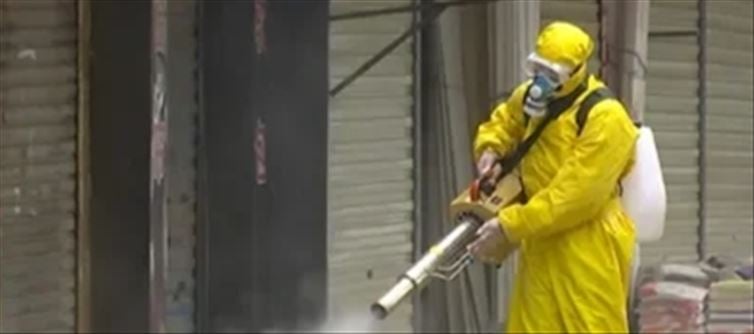 അണുനാശിനി സ്പ്രേ ചെയ്തുകൊണ്ട് കൊറോണ റൈവസിനെയോ,