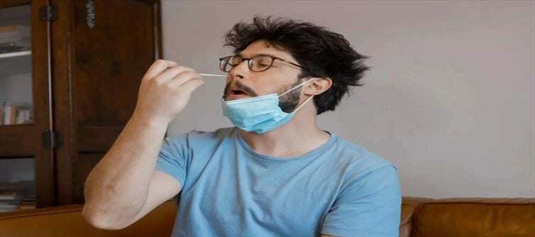 6- After this, insert the nasal swab into your nose for about 2 to 4 cm and rotate it five times.