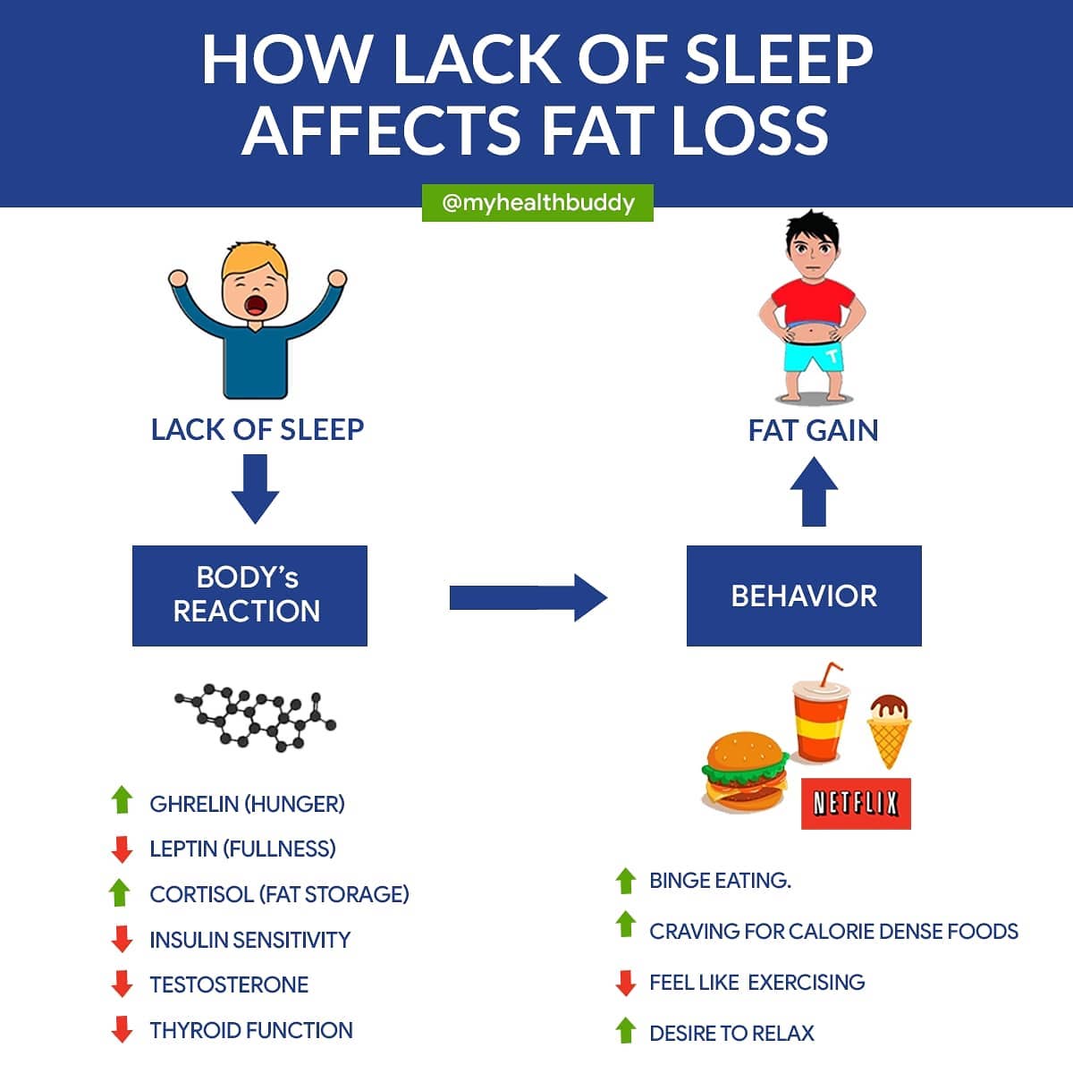 A study by Ohio State university states that people who sleep less than 7-8 hours consume extra sugar, fat, caffeine, snacks, and carbohydrates during the day. Once in their whole day's diet, junk food is definitely there, which becomes the biggest reason for their weight gain.