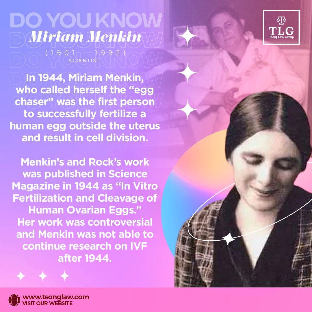 Miriam Menkin is the name of the female scientist who created the IVF technology. Miriam was a technician for Howard University's Dr. john Rock, a specialist in infertility. They wanted to create eggs that were fertile but incapable of bearing children by replicating them outside of the human body. It took Maryam six years to find this technique, and in february 1944, after years of perseverance and constant setbacks, she experienced her first victory. Currently, this method is referred to as the In Vitro Fertilization (IVF) method globally.