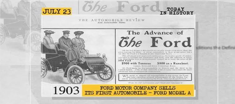 1903 - ఫోర్డ్ మోటార్ కంపెనీ తన మొదటి కారును విక్రయించింది.
