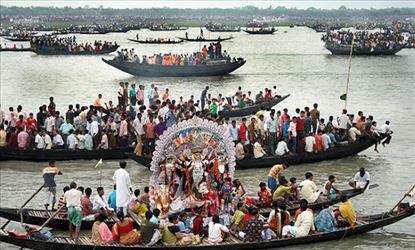 এদিকে, ইছামতীর বিসর্জন ঘিরে কঠোর নিরাপত্তা জারি করা হয়েছে। পুজোর মধ্যেই মাঝনদীতে দু'দেশের সীমান্তরক্ষী বাহিনীর ফ্ল্যাগ মিটিং হবে। তাতে এদেশের বিএসএফ ছাড়াও পশ্চিমবঙ্গ পুলিশ, টাকি পুরসভার চেয়ারম্যান থাকবেন। সূত্রে জানা গিয়েছে, নিরাপত্তার জন্য প্রচুর বিএসএফ জওয়ান ও পশ্চিমবঙ্গ পুলিস কর্মী মোতায়েন থাকবে। একাধিক জায়গায় ওয়াচ টাওয়ার থাকবে। থাকবে সাদা পোশাকের পুলিশ।