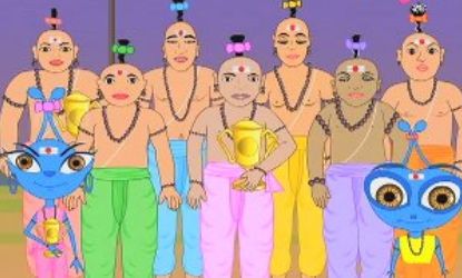 పండితులిద్దరూ తర్కం, మీమాంస మొదలయిన వాటి గురించి చర్చించుకుంటున్నారు. వాటిల్లో శిష్యులికేవీ అర్థంకావడంలేదు- ఏవో పొడిముక్కలు తప్ప. అయినా వినేస్తున్నారు. అంతలో గురుతపత్ని శిష్యులని పిలిచి – అతిథి వచ్చారు కదా. ఇంట్లోకి నెయ్యి తెండి అని గిన్నె, డబ్బులు ఇచ్చారు. ఇద్దరు శిష్యులు వెళ్ళబోతుంటే – ఈపాటిదానికిద్దరెందుకూ? అన్నారు గురుపత్రి. ఒక బుర్రకంటే రెండు బుర్రలు నయం అన్నారు గురువుగారు. అన్నాడు ఒకడు.
