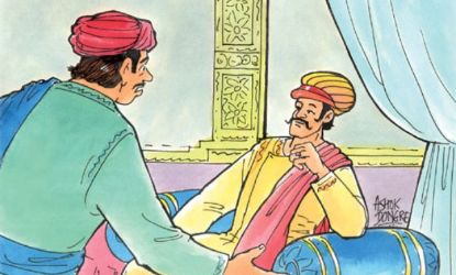Akbar was once in a naughty mood and dressed up as a demon and confronted Birbal. He first welcomed the King, then laughed at him, thereafter he became serious and started thinking something. Akbar was observing Birbal. He was sure Birbal would be scared but no such thing happened. He then asked Birbal, “It is Strange that you recognized me and laughed, but suddenly you become serious And started thinking.”