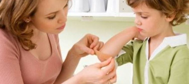 చర్మం చీరుకుపోయి రక్తం వస్తుంటే డెట్టాల్ నీటితో చర్మాన్ని శుభ్రంగా కడిగి, టించర్ను దూదితో అద్దాలి. రక్తం ఆగకుండా వస్తుంటే, తడిబట్టతో కొంతసేపు నొక్కి ఉంచాలి. ఆ తర్వాత వైద్యుని వద్దకు తీసుకువెళ్ళి వైద్య సలహా ప్రకారంగా కట్టుకట్టించడమో, మందులు ఇవ్వడమో చేయాలి. చిన్నారులను వేడి వస్తువుల దగ్గరకు రానీయకుండా, వంటింట్లో పరుగులు తీయకుండా చూసుకుంటుండాలి. వేడి నీళ్ళతో ఆడాలని చేయి పెట్టినా చేతులు కాలి, లేత చర్మానికి బొబ్బలొస్తాయి.. వెంటనే పిల్లల చేతులు మీద ధారగా చన్నీళ్ళను పోయాలి. ఆ తర్వాత చల్లని నీళ్ళతో తడిపిన బట్టను చర్మం మీద ఉంచి, వెంటనే డాక్టర్ వద్దకు తీసుకెళ్ళాలి. చిన్నపిల్లలకు అందనంత ఎత్తులో వేడి కుక్కర్ను, వేడి పాత్రలను, బాణలిలాంటి వాటిని ఉంచాలి. డైనింగ్ టేబుల్ మీద, టేబుల్ క్లాత్కు క్రిందకు వేలాడుతున్నట్లుగా వేయకూడదు.