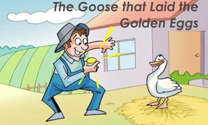 Once he had a greedy idea. He thought, “I have become rich with one golden egg that the goose lays every day. It must be having a lot of them in its stomach. I’ll cut open its stomach and get all the golden eggs at once.