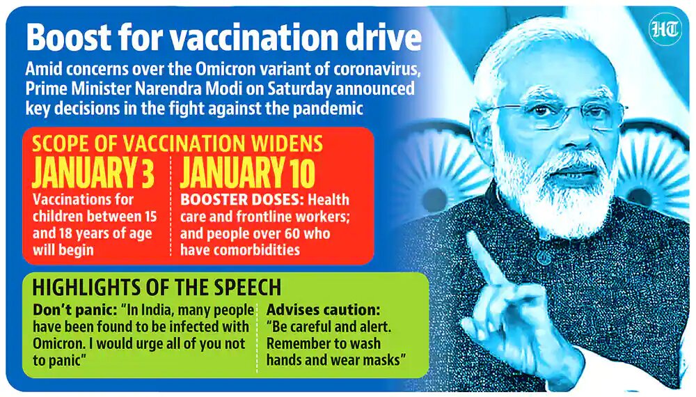 PM Modi had declared that the government will start a vaccination drive for children of 15-18 years from january 3. According to officials, the number of kids in the nation aged 15 to 18 may be between 7 to 8 crore. The central government has announced that children can reserve to be vaccinated through the COWIN portal from january 1. The federal government is taking the necessary steps to vaccinate children amid the Omicron threat. Dr. RS Sharma, Chairman, Cowin Portal, told reporters today that children between the ages of 15 and 18 can book on the Cowin portal on january 1 to be vaccinated. He also said that most of the students do not have documents like aadhar so they can make reservations using 10th class school identity cards. Only the covid-19 covaxin from Bharat Biotech has received approval for emergency use in children. The study also found that the interval between the booster dose and the second dose for those over 60 years of age could be as long as 9 to 12 months. Zydus Cadila's ZyCoV-D vaccine is not yet included in the coronavirus vaccine category. Significantly, the ZyCoV-D vaccine is the world's first DNA-based vaccine.