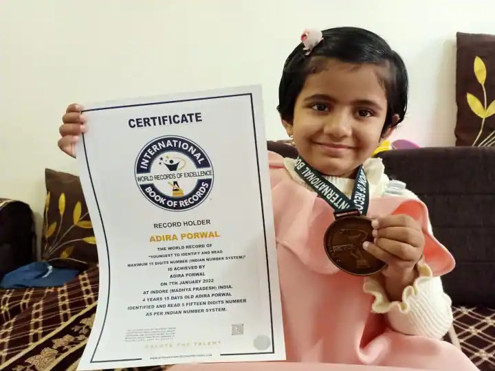 Adira Porwal, just 4 years old, living in Indore, Madhya Pradesh, has done wonders. Adira has shown at such a young age by reading 5 numbers of 15 digits from the indian and international Digit System. With this, the girl has registered her name in the international Book of Records, making a new and unique record.