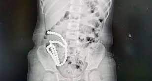 This case of marble coming out of the girl's stomach is from a city in China. The age of this girl is 4 years. The girl had swallowed about 61 small marbles. This little girl of 4 years swallowed about 61 marbles one by one. After swallowing the marbles, the girl started having a stomach ache. This girl had pain in her stomach for almost months. At last, after the report of the doctors, the secret of her abdominal pain was revealed. All the marbles had gathered together in the stomach of this girl. It can be seen in the X-ray that all the marble has gathered in its stomach like a string of pearls.