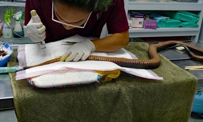 గాయం కారణంగా తోక భాగం దెబ్బతిని కదలడానికి ఎంతో అవస్థపడుతున్న ఒక సర్పరాజాన్ని గమనించిన ఒక స్వచ్చంద సంస్థకు చెందిన వ్యక్తి, దానిని దగ్గరలోని వెటర్నరీ ఆసుపత్రికి తీసుకెళ్లాడు. అయితే ఆ పాము పరిస్థితిని గమనించిన వైద్యుల బృందం, ముందుగా ఎక్సరే తీసిన తరువాత, దానికి ఎనస్తీషియా ఇచ్చి దాదాపుగా రెండు గంటలపాటు ఎంతో శ్రమించి, తోక భాగాన్ని తొలగించి, అనంతరం కుట్లు వేసి అతికించి అరుదైన ఆపరేషన్ ని నిర్వహిచడం జరిగింది. అంతేకాదు ఆపరేషన్ తరువాత దానిని మరొక రెండు రోజుల పాటు వారి అబ్జర్వేషన్ లో ఉంచి,