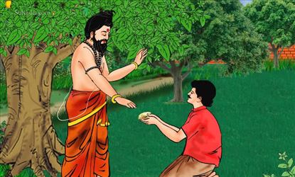 కర్రలు తీసుకుని బయలుదేరారు. తన కొడుకులే తనను కర్రలతో చావగొడుతుంటే అతను దీనంగా సాధువు వంక చూశాడు కానీ అప్పటికే చాలా ఆలస్యమైంది.