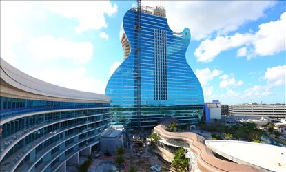 హాలివుడ్లో అత్యంత ఖరీదైన, కళ్లు చెదిరే గిటార్ హోటల్ అంగరంగ వైభవంగా ప్రారంభమైంది. అచ్చం గిటార్ ఆకారంలో నిర్మించిన ఈ హోటల్లో ఏడు వేల సీట్లు కలిగిన కాసినో ఫ్లోర్, 1200 హోటల్ గదులు ఉన్నాయి. ఇవి కాకుండా పలు గేమింగ్ టేబుళ్లు, సంగీత విభావరి వేదికలు ఉన్నాయి. హోటల్ నిర్మాణానికి అయిన ఖర్చు ఒకటిన్నర బిలియన్ డాలర్లు.