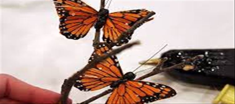 In that video there is a twig on the ground. When a man touched the leaf, it suddenly transforms into a butterfly and flew away. Birds usually change their appearance to protect themselves from other big living beings. This phenomenon is called natural camouflage. Camaouflage refers to the utilization of materials by an animal to blend in with its environment such that it is difficult to be recognized.