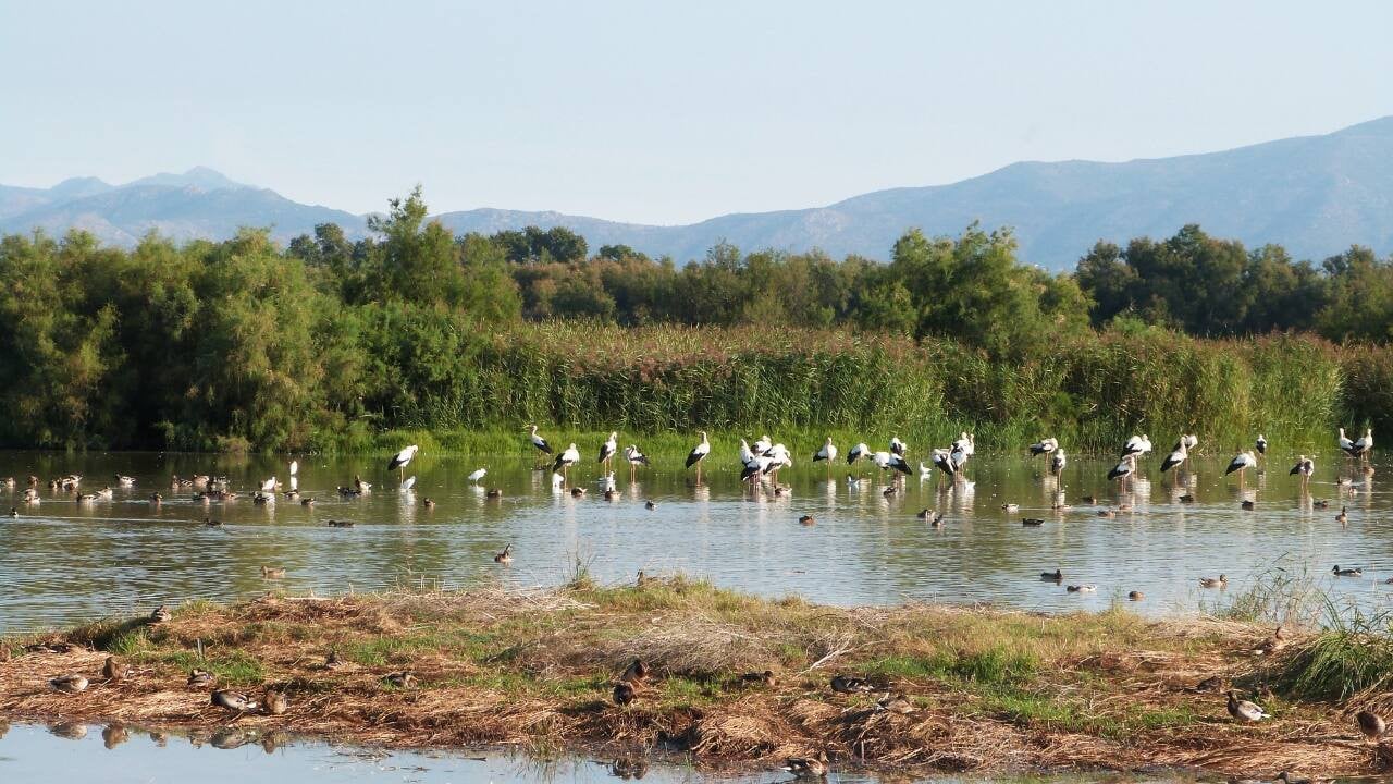 migratory birds flocking to a tranquil wetland, showcasing the splendor of nature's cycle.