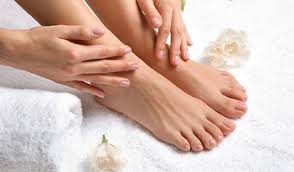 · Prepares feet for scrubbing and nail care