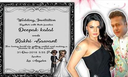 ఆ మధ్య మీటూ ఉద్యమాన్ని ఇండియాలోకి తీసుకొచ్చిన తను శ్రీ దత్తా మీద సంచలన కామెంట్స్ చేసి హాట్ టాపిక్గా మారింది. ఆ తర్వాత హరియాణాలోని పంచకులలో జరిగిన కాంటినెంటల్ రెజ్లింగ్ ఎంటర్టైన్మెంట్(సీడబ్ల్యూఈ) పోటీ సందర్భంగా జరిగిన ఘటనతో మరో సారి వార్తలలోకి వచ్చింది. తాజాగా వివాదాస్పద నటి రాఖీ సావంత్ కూడా పెళ్లి చేసుకోబోతున్నట్లు సోషల్ మీడియాలో ఓ పోస్ట్ పెట్టింది. ‘ఇండియా గాట్ టాలెంట్’ యాక్టర్ దీపక్ కలాల్ని డిసెంబర్ 31 సాయంత్రం 5: 55 నిమిషాలకు లాస్ ఏంజెల్స్లో వివాహం చేసుకోబోతున్నట్టు రాఖీ సావంత్ తెలిపింది.