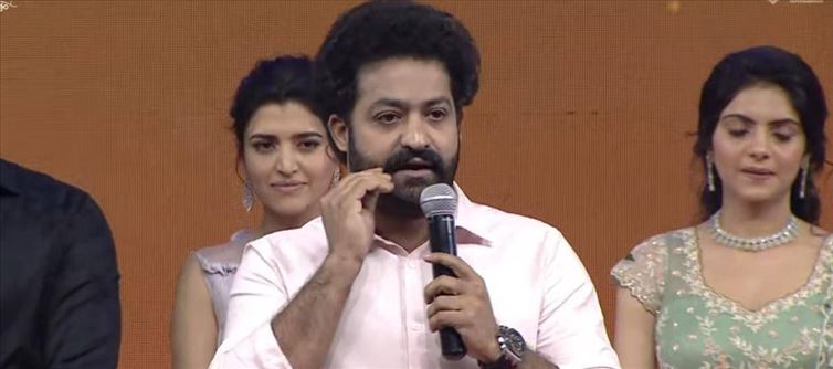 ఎన్టీఆర్ మాట్లాడుతూ... ‘జీవితంలో మొదటిసారిగా మాట్లాడేందుకు ఇబ్బంది పడుతున్నాను. మీరు (అభిమానులు) అరిస్తే ఎనర్జీ వస్తుంది. ఇలా చాలా తక్కువ సార్లు ఇబ్బంది పడుతుంటాను.. రేపొద్దున అభయ్, భార్గవ్ గానీ ఏదైనా సాధిస్తే వాళ్ల గురించి చెప్పాలంటే మాట్లాడలంటే ఎంత ఇబ్బందిగా ఉంటుందో ఇప్పుడు తెలుస్తోంది. పిల్లలు