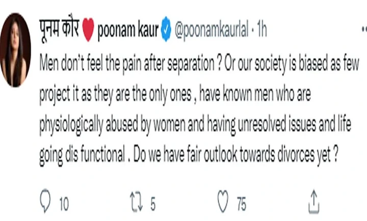 తాజాగా పూనమ్ కౌర్ ఒక ట్వీట్ చేసి తిరిగి డిలీట్ చేసింది. దీంతో ఇప్పుడు విషయం చర్చనీయాంశంగా మారింది. ఇక ఆ విషయం ఏమిటంటే ఈమె విడాకులపై స్పందించి కొన్ని వాక్యాలను తెలియజేసింది. అలా తెలియజేసిన కొద్దిసేపటికే ఆమె ఆ ట్వీట్ ను డిలీట్ చేయడం గమనార్హం. అయితే పూనమ్ కౌర్ ఈ విషయంపై స్పందించడంతో పలువురికి పలు అనుమానాలు వ్యక్తమవుతున్నాయి.