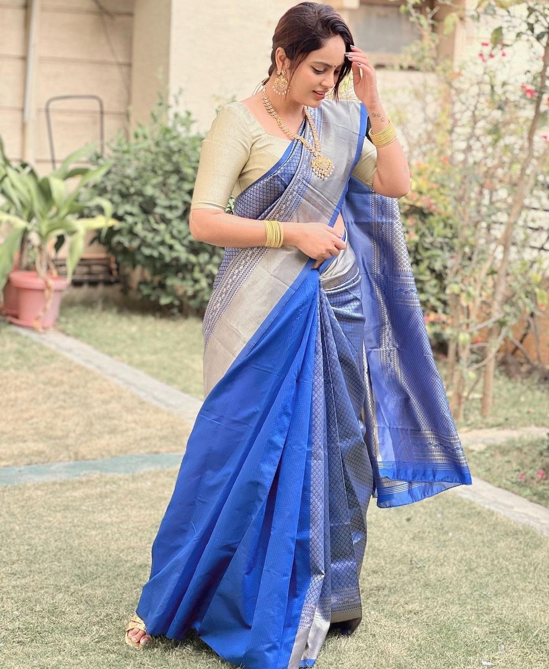 అందాల ముద్దుగుమ్మ నందిత శ్వేత, నిఖిల్ హీరోగా తెరకెక్కిన ఎక్కడికి పోతావు చిన్నవాడా సినిమాతో తెలుగు ప్రేక్షకులను పలకరించింది, ఈ సినిమాలో తన అద్భుతమైన నటనతో, అందచందాలతో తెలుగు ప్రేక్షకుల మనసు దోచుకున్న నందితా శ్వేత ఆ తర్వాత కూడా టాలీవుడ్ లో పర్వాలేదు అనే రేంజ్ లో సినిమా అవకాశాలను దక్కించుకుంది. అందులో భాగంగా నందిత శ్వేత, నితిన్ హీరోగా తెరకెక్కిన శ్రీనివాస కళ్యాణం సినిమాలో ఒక ముఖ్య పాత్రలో నటించి ప్రేక్షకులను మెప్పించింది, ఇలా ఈ రెండు సినిమాలతో టాలీవుడ్ లో మంచి క్రేజ్ ను సంపాదించుకున్న ఈ ముద్దుగుమ్మ ఆ తర్వాత అక్షర అనే ఒక లేడి ఓరియెంటెడ్ సినిమాల్లో నటించింది, ఎన్నో అంచనాలతో థియేటర్ లలో విడుదలైన ఈ సినిమా ఈ ముద్దుగుమ్మకు ఆశించిన విజయాన్ని బాక్స్ ఆఫీస్ దగ్గర అందించలేకపోయింది.  ఇలా సినిమాలతో ఎంతో మంది ప్రేక్షకులను అలరించిన నందితా శ్వేత సోషల్ మీడియాలో కూడా అంతే యాక్టివ్ గా ఉంటూ ఎప్పటికప్పుడు తన అభిమానులతో అనేక విషయాలను పెంచుకుంటూ ఉంటుంది, తన షూటింగ్ అప్డేట్ లను,  తన డైలీ ఆక్టివిటీస్ ను ఎప్పటికప్పుడు అభిమానులతో పంచుకుంటూ ఉండే నందితా శ్వేత అప్పుడప్పుడు తన అంద చందాలు ప్రదర్శితమయ్యే లో ఉన్న ఫోటోలను కూడా అప్లోడ్ చేస్తూ ఉంటుంది, తాజాగా కూడా ఈ ముద్దుగుమ్మ కొన్ని ఫోటోలను తన సోషల్ మీడియా అకౌంట్ లో కొన్ని పోటోలను పోస్ట్ చేసింది, ఈ ఫోటోలలో నందిత శ్వేత సంప్రదాయబద్ధంగా చీర కట్టుకొని దానికి తగిన బ్లౌజ్ ను ధరించి మెడలో ఒక లాకెట్ ను వేసుకొని చాలా క్లాస్ లుక్ లో ఫోటోలకు స్టిల్స్ ఇచ్చింది, ప్రస్తుతం నందితా శ్వేత కు సంబంధించిన ఈ క్లాస్ లుక్ లో, సంప్రదాయబద్దంగా ఉన్న ఫోటోలు సోషల్ మీడియాలో వైరల్ అవుతున్నాయి.