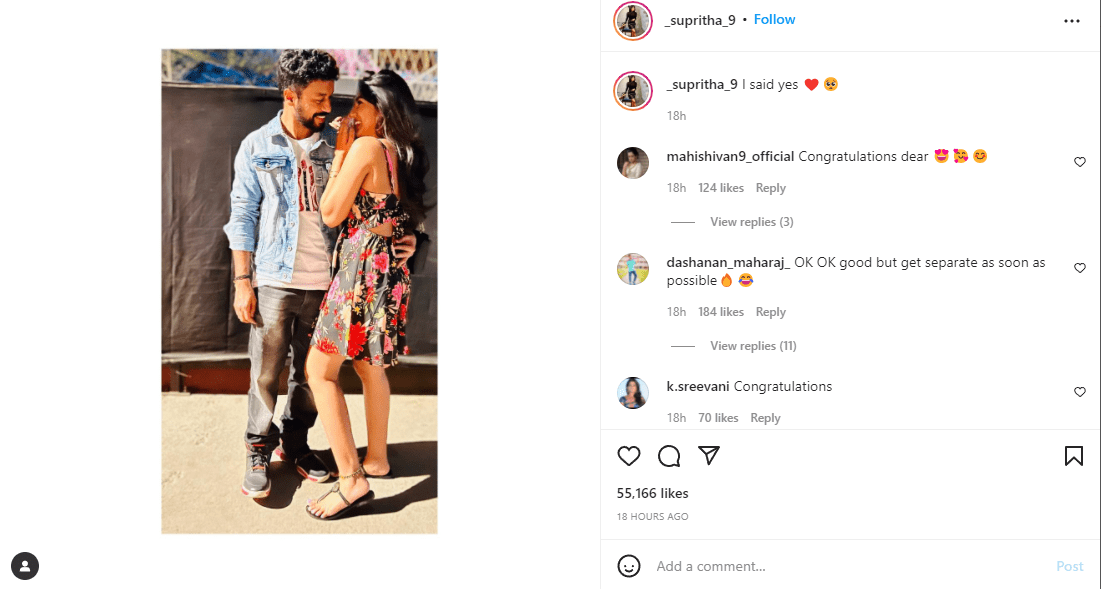 ఇక ఆ ఫోటోని షేర్ చేస్తూ.. తన ప్రేమకు నేను ఓకే చెప్పానని చెబుతూ.. ఒక అబ్బాయితో కలిసి ఉన్న ఫోటోను సుప్రీత షేర్ చేసింది. దీంతో ఆమె ఫాలోవర్స్ ఎవరు అబ్బాయి అనే విషయం తెలుసుకునే ప్రయత్నం చేయగా.. ప్రస్తుతం సినీ ఇండస్ట్రీలో వినిపిస్తున్న సమాచారం ప్రకారం.. సుప్రీత తో ఉన్న ఆ అబ్బాయి పేరు రాఖీ జోర్డాన్.. ఇతను ఒక ర్యాపర్ ఆల్బమ్స్ చేస్తూ ఉంటాడు. ఇక వీరిద్దరూ కలిసి ఒక ప్రైవేట్ ఆల్బమ్ లో కూడా నటిస్తున్నట్లు సమాచారం. ఇక అందుకు సంబంధించి త్వరలోనే ఒక వీడియో సాంగ్ ను కూడా విడుదల చేయబోతున్నట్లు సమాచారం.