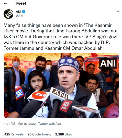 The movie kashmir Files is currently the talk of the country. The film has split into two factions, with many opposing the film, while others say it conveys the plight of Kashmiri pundits. Former kashmir chief minister omar abdullah has also commented on the film.