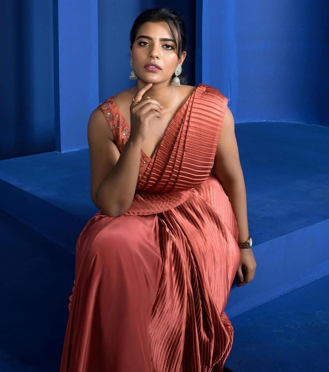 అలాగే అప్పుడప్పుడు తన ఫోటోలను కూడా తన సోషల్ మీడియాలో పోస్ట్ చేస్తూ ఉండే ఐశ్వర్య రాజేష్ తాజాగా తన ఇన్ స్టా లో కొన్ని ఫోటోలను పోస్ట్ చేసింది. ఈ ఫోటోలలో ఐశ్వర్య రాజేష్ క్లాస్ లుక్ లో సారీ ని  కట్టుకొని, అందుకు తగిన స్లీవ్ లెస్ బ్లౌజ్ ను ధరించి, చేతికి వాచీ పెట్టుకొని చాలా క్లాస్ గా, డీసెంట్ గా ఫోటోలకు స్టిల్స్ ఇచ్చింది.  ఐశ్వర్య రాజేష్ కు సంబంధించిన ఈ ఫోటోలు ప్రస్తుతం నెట్టింట్లో తెగ వైరల్ అవుతున్నాయి.