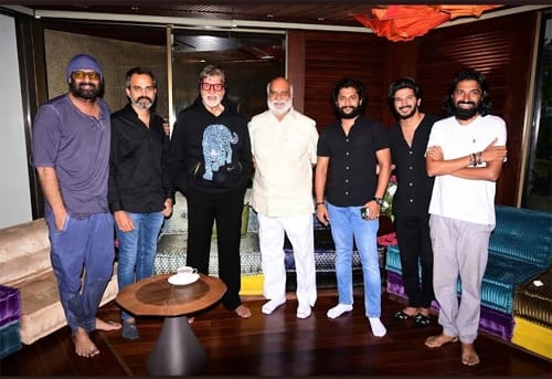 ఇప్పటికే ఈ సినిమా షూటింగ్ ప్రారంభం అయి చాలా కాలం అవుతుంది . ప్రస్తుతం ఈ సినిమా షూటింగ్ శర వేగంగా జరుగుతోంది . కాగా తాజాగా హైదరాబాద్‌ లో ఈ మూవీ కి సంబంధించి ఓ షెడ్యూల్‌ షూటింగ్ ని చిత్ర బృందం పూర్తి చేసుకుంది . ఇది ఇలా ఉంటే తాజాగా ఈ సినిమా చిత్ర బృంద నికి సంబంధించిన ఒక ఫోటో సోషల్ మీడియాలో తెగ వైరల్ అవుతుంది. తాజాగా వైరల్ అవుతున్న ఈ ఫోటోలో నాగ్ అశ్విన్, ప్రశాంత్ నీ ల్, అమితాబ్ బచ్చన్ , రాఘవేంద్రరావు , నాని ,  దుల్కర్ సల్మాన్‌ లతో పాటు ప్రభాస్ కూడా ఉన్నాడు . హైదరాబాద్‌ లోని గచ్చిబౌలి లో వైజయంతీ మూవీస్ కొత్త ఆఫీస్ ప్రారంభోత్సవం సందర్భంగా వీరంతా ఈ ఫోటో ను తీసుకున్నారు . అందుకు సంబంధించిన ఫోటో ప్రస్తుతం నెట్టింట తెగ వైరల్ అవుతుంది.
