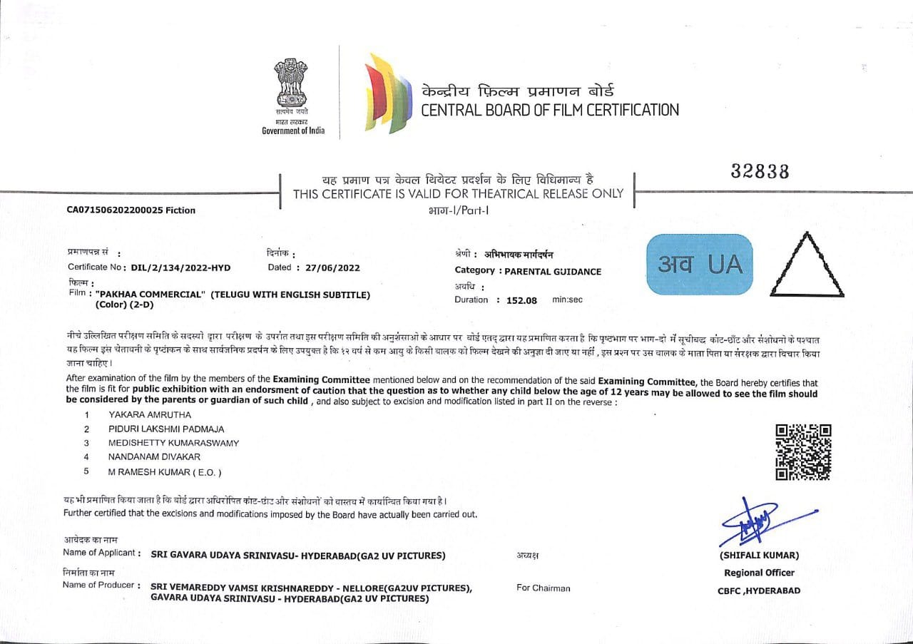అందులో భాగంగా ఇప్పటికే ఈ సినిమా ప్రీ రిలీజ్ ఈవెంట్ ఫంక్షన్ ను చిత్ర బృందం ముగించింది. ఈ ఫంక్షన్ కు మెగాస్టార్ చిరంజీవి ముఖ్య అతిథిగా విచ్చేశారు. ఇది ఇలా ఉంటే తాజాగా పక్కా కమర్షియల్ చిత్రం తాజాగా సెన్సార్ కార్యక్రమాలను పూర్తి చేసుకుంది. సెన్సార్ బోర్డ్ నుండి ఈ చిత్రం యు/ఎ సర్టిఫికెట్ ను అందుకుంది. అలాగే  ఈ సినిమా రన్ టైమ్ ను కూడా చిత్ర బృందం లాక్ చేసింది. ఈ సినిమా రన్ టైమ్ ను చిత్ర బృందం 2 గంటల 32 నిమిషాలకు లాక్ చేసింది.