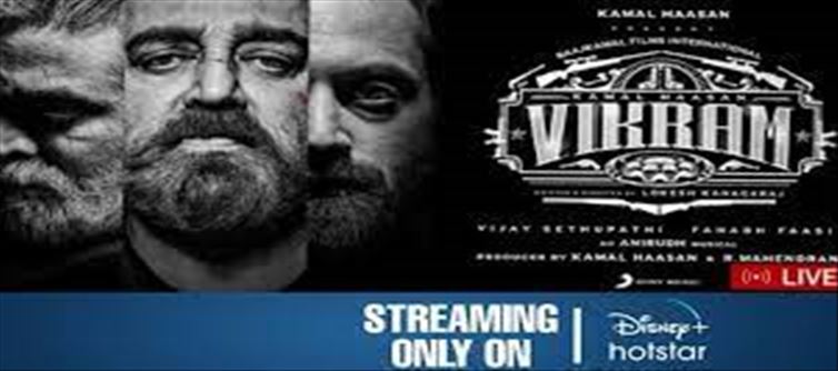 Vikram's movie has been officially announced to be released on Disney Plus Hotstar. The film was released in theaters around the world on june 3. The film was well-received by the audience and the number of theaters also doubled. The film manages to entertain almost 25 days after its release. The film is running not only in tamil Nadu but also in Kerala.Screen critics have said that the film was a box office success. It has been reported that the film has grossed Rs 155 crore in just 17 days of its release and vikram has surpassed the record of Rs 152 crore set by bahubali 2 five years later. The film is said to be in theaters for another 4 to 5 weeks and vikram is set to break the Rs 400 crore mark.In this case, the official announcement has been made that the vikram movie will be released on July 8 on Disney Plus Hotstar.