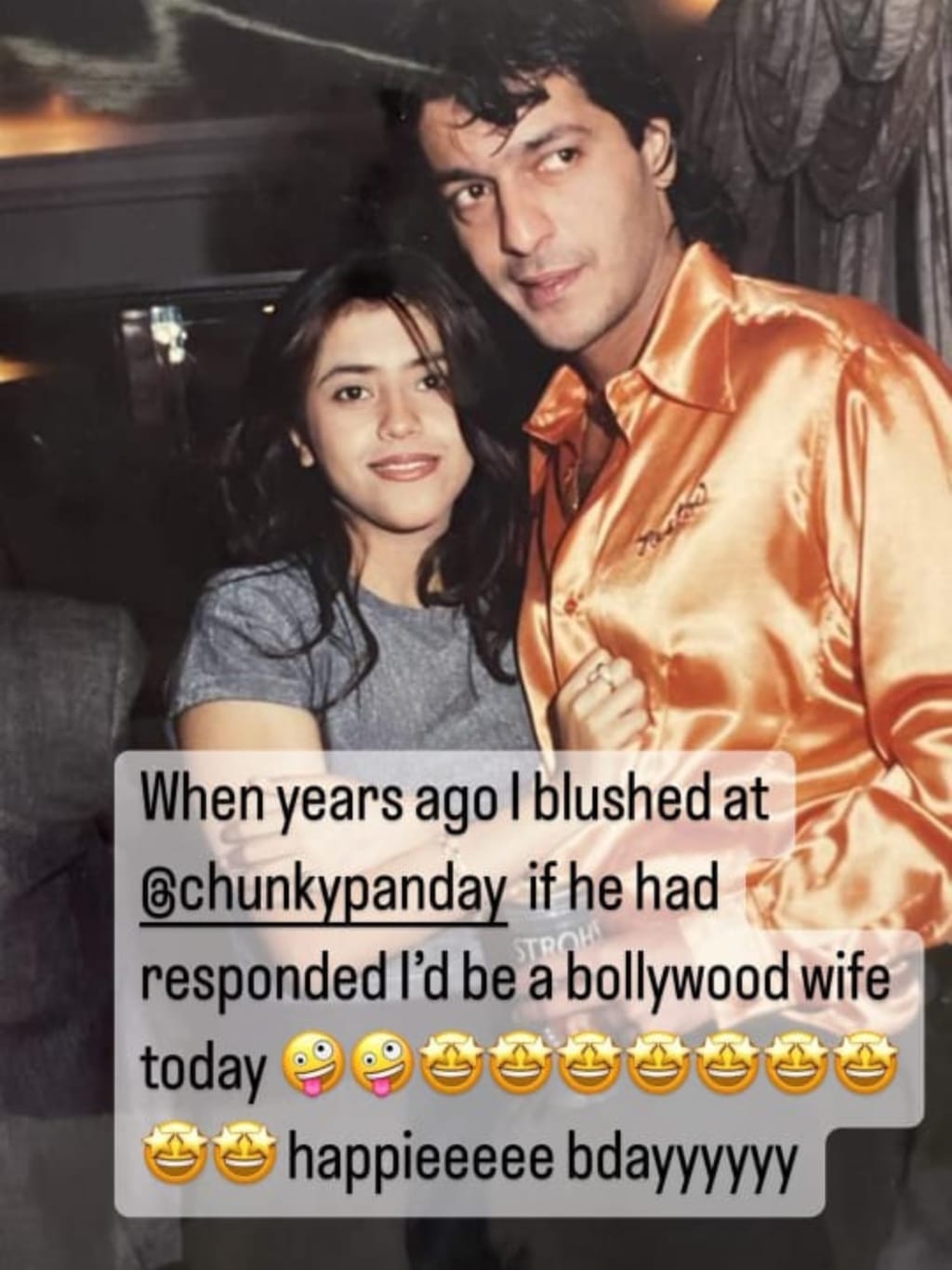 On the actor's birthday, ekta kapoor posted a picture in the story section of her instagram account. In this, chunky pandey and ekta kapoor are seen doing side hugs to each other. This picture seems to be from a long time ago. The thing to note is the caption in this picture, which reads, 'Years ago I had a crush on Chunky Pandey. If she had answered at that time, today I would have been called a bollywood wife. Happy Birthday. This post is becoming quite viral on social media.