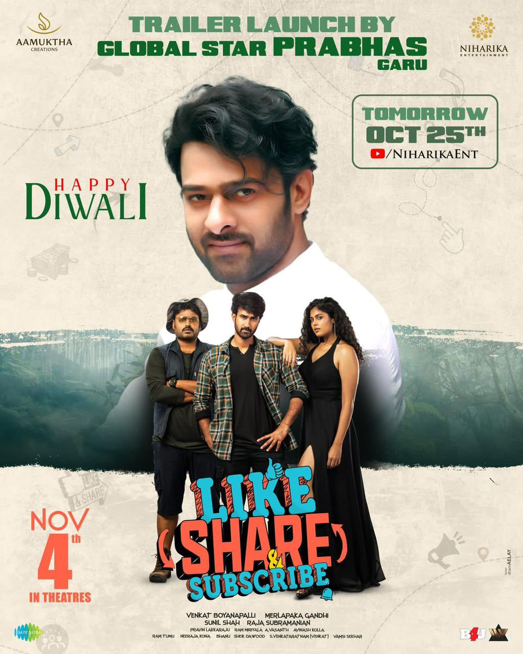 ఇది ఇలా ఉంటే ఈ మూవీ ని నవంబర్ 4 వ తేదీన విడుదల చేనున్నట్లు చిత్ర బృందం కొన్ని రోజుల క్రితమే అధికారికంగా ప్రకటించింది. ఇది ఇలా ఉంటే ఈ మూవీ ట్రైలర్ ను అక్టోబర్ 25 వ తేదీన విడుదల చేయనున్నట్లు ఈ మూవీ యూనిట్ కొన్ని రోజుల క్రితం ప్రకటించింది. ఈ మూవీ ట్రైలర్ ను రెబల్ స్టార్ ప్రభాస్ చేతుల మీదగా విడుదల చేయనున్నట్లు మూవీ యూనిట్ తాజాగా అధికారికంగా ప్రకటిస్తూ ఒక పోస్టర్ ను కూడా విడుదల చేసింది. ప్రస్తుతం ఈ పోస్టర్ వైరల్ అవుతుంది. మరి ఈ మూవీ ట్రైలర్ ప్రేక్షకులను ఏ మేరకు ఆకట్టుకుంటుందో చూడాలి.