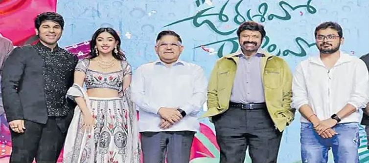 ఇలాంటి పరిస్థితుల్లో వారికి ఎలాంటి సినిమాలు అందించాలి అన్నది పరిశ్రమ పెద్దలు ఆలోచించాలి'' అన్నారు కథానాయకుడు బాలకృష్ణ. ఆయన ఆదివారం హైదరాబాద్లో జరిగిన 'ఊర్వశివో రాక్షసివో' చిత్ర విడుదల ముందస్తు వేడుకలో ముఖ్యఅతిథిగా పాల్గొన్నారట.. అల్లు శిరీష్, అను ఇమ్మాన్యుయేల్ జంటగా నటించిన ప్రేమకథా చిత్రమిది. రాకేష్ శశి తెరకెక్కించారు. ధీరజ్ మొగిలినేని, విజయ్.ఎమ్ సంయుక్తంగా నిర్మించారు. అల్లు అరవింద్ సమర్పకులు. నవంబరు 4న ఈ సినిమా విడుదల కానుంది. ఈ సందర్భంగా బాలకృష్ణ మాట్లాడుతూ.. ''ట్రైలర్ బాగుంది. సినిమా కలర్ఫుల్గా కనిపిస్తోంది. నాకూ ఇలాంటి చిత్రాల్లో నటించాలని ఉంటుంది. కాకపోతే నా పరిమితులు అయితే నాకున్నాయి. నా అభిమానులు, ప్రేక్షకులకు నచ్చనిది వాళ్లపై బలవంతంగా రుద్దాలని అనుకోను. ఈ సినిమా విజయవంతమవుతుందని నమ్ముతున్నా'' అన్నారు. ''మా నాన్నతో రెండు సినిమాలు చేశా. 'కొత్తజంట', 'శ్రీరస్తు శుభమస్తు'. రెండూ పెద్ద హిట్టయ్యాయి. ఈ మూడో చిత్రమూ అదే తరహాలో విజయం సాధించాలని కోరుకుంటున్నా. ఇందులో అను ఇమ్మాన్యుయేల్లోని నటిని అందరూ చూస్తారు. దర్శకుడు రాకేష్ పైకి నెమ్మదిస్తుడిలా కనిపిస్తాడు కానీ, పెద్ద పని రాక్షసుడు'' అన్నారు హీరో అల్లు శిరీష్. అల్లు అరవింద్ మాట్లాడుతూ.. ''ప్రస్తుతం యువతరం ఎదుర్కొంటున్న ఓ సమస్య ఆధారంగా రాసుకున్న కథతో తెరకెక్కించిన చిత్రమిది. మంచి వినోదం ఉంది. రాకేష్ చక్కగా తెరకెక్కించారు'' అన్నారు. ''దర్శకుడు రాకేష్ ఈ కథతో నన్ను కలిసినప్పుడే నిర్ణయించుకున్నా.. ఈ చిత్రం నేను కచ్చితంగా చేయాలని. తనకీ కథపై ఉన్న నమ్మకం అలాంటిది. ఇది చాలా మంచి రొమాంటిక్ ఎంటర్టైనర్. అందరూ థియేటర్లలో చూసి ఆనందించండి'' అంది అను ఇమ్మాన్యుయేల్. ''అల్లు శిరీష్కి నాకు కొన్నేళ్లుగా మంచి అనుబంధం ఉంది. ఈ చిత్రానికి ముందుకు మేము కొన్ని కథలు అనుకున్నా కుదర్లేదు. ఇన్నేళ్లకు ఈ చిత్రంతో అది సాధ్యమైంది. ఇది మా కాంబినేషన్లో బెస్ట్ సినిమాగా నిలిచిపోతుందని నమ్ముతున్నా. ఈ చిత్రం కోసం శిరీష్ తనని తాను ఎంతగా మార్చుకున్నాడన్నది టీజర్, ట్రైలర్స్ చూస్తేనే అర్థమవుతుంది. అను ఇమ్మాన్యుయేల్ల వల్లే ఈ సినిమా చాలా సాఫీగా సాగిపోయింది'' అన్నారు దర్శకుడు. ఈ కార్యక్రమంలో మారుతి, వెంకటేష్ మహా, పరశురామ్, చందూ మొండేటి, వశిష్ఠ, సునీల్, తన్వీర్, అచ్చు రాజమణి, సాయి రాజేష్