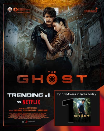 ఇది ఇలా ఉంటే తాజాగా ది ఘోస్ట్ మూవీ "ఓ టి టి" ఫ్లాట్ ఫామ్ లోకి ఎంట్రీ ఇచ్చింది. ఈ మూవీ ప్రముఖ "ఓ టి టి" ప్లాట్ ఫామ్ లో ఒకటి అయినటు వంటి నెట్ ఫ్లిక్స్ "ఓ టి టి" ప్లాట్ ఫామ్ లో ప్రస్తుతం స్ట్రీమింగ్ అవుతుంది. ఈ మూవీ కి నెట్ ఫ్లిక్స్ "ఓ టి టి" ప్లాట్ ఫామ్ లో అద్భుతమైన రెస్పాన్స్ లభిస్తుంది. దానితో ప్రస్తుతం నెట్ ఫ్లిక్స్ "ఓ టి టి" ప్లాట్ ఫామ్ లో ది ఘోస్ట్ మూవీ మొదటి స్థానంలో ట్రెండింగ్ అవుతుంది.