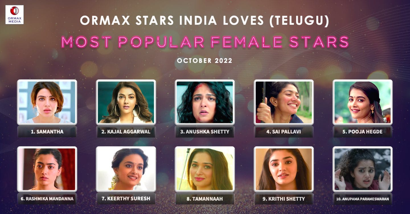 మూవీ ప్రస్తుతం విజయవంతంగా థియేటర్ లలో ప్రదర్శించబడుతుంది. 2 వ స్థానంలో కాజల్ అగర్వాల్ నిలిచింది. కాజల్ అగర్వాల్ ప్రస్తుతం కమల్ హాసన్ హీరోగా శంకర్ దర్శకత్వంలో తెరకెక్కుతున్న ఇండియన్ 2 మూవీలో నటిస్తోంది. 3 వ స్థానంలో అనుష్క శెట్టి నిలిచింది. 4 వ స్థానంలో సాయి పల్లవి నిలిచింది. 5 వ స్థానంలో పూజా హెగ్డే నిలిచింది. 6 వ స్థానంలో రష్మిక మందన గెలిచింది. 7 వ స్థానంలో కీర్తి సురేష్ నిలిచింది. 8 వ స్థానంలో తమన్నా నిలిచింది. తమన్నా ప్రస్తుతం మెగాస్టార్ చిరంజీవి హీరోగా తెరకెక్కుతున్న భోళా శంకర్ మూవీ లో హీరోయిన్ గా నటిస్తోంది. 9 వ స్థానంలో కృతి శెట్టి నిలిచింది. కృతి శెట్టి ప్రస్తుతం వరుస మూవీ ఆఫర్ లతో ఫుల్ జోష్ లో కెరియర్ ను ముందుకు సాగిస్తుంది. 10 వ స్థానంలో అనుపమ పరమేశ్వరన్ నిలిచింది. అనుపమ పరమేశ్వరన్ ప్రస్తుతం 18 పేజెస్ మూవీ లో హీరోయిన్ గా నటిస్తుంది.