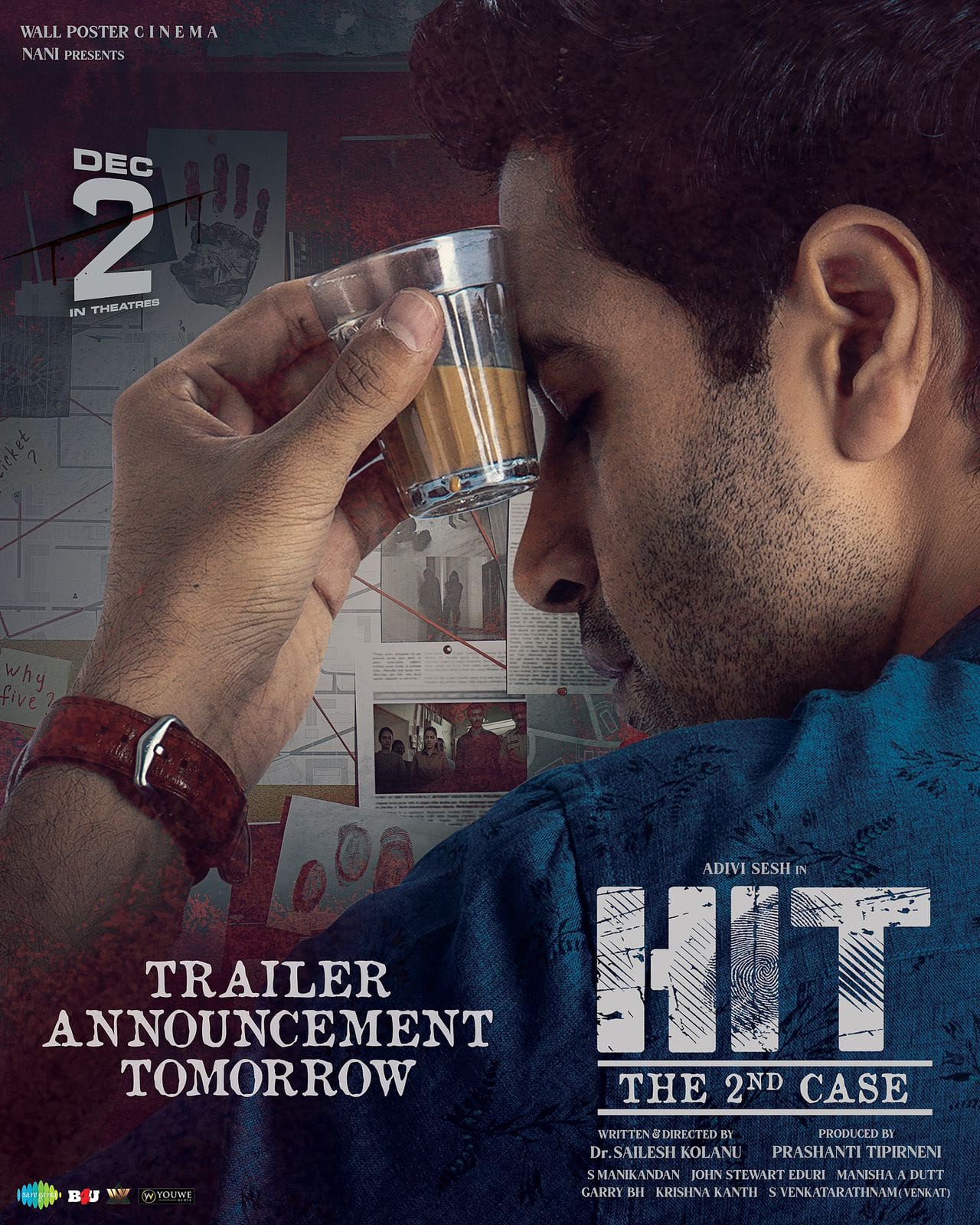 ఆ టీజర్ కు ప్రేక్షకుల నుండి మంచి ఆదరణ లభించింది. ఇది ఇలా ఉంటే తాజాగా ఈ మూవీ యూనిట్ ఈ సినిమాకు సంబంధించిన ఒక క్రేజీ అప్డేట్ ను విడుదల చేసింది. తాజాగా ఈ మూవీ యూనిట్ ఈ సినిమా ట్రైలర్ అనౌన్స్మెంట్ ను రేపు చేయనున్నట్లు అధికారికంగా ప్రకటిస్తు ఒక పోస్టర్ ను కూడా విడుదల చేసింది.  వరుస విజయాలతో ఫుల్ జోష్ లో ఉన్న అడవి శేషు ఈ మూవీ లో హీరోగా నటించడం ,  ఇప్పటికే హిట్ ది ఫస్ట్ కేస్ మూవీ బ్లాక్ బస్టర్ విజయం సాధించడంతో , హిట్ ది సెకండ్ కేస్ మూవీ పై ప్రేక్షకులు భారీ అజనాలు పెట్టుకున్నారు. మరి ఈ మూవీ బాక్స్ ఆఫీస్ దగ్గర ఏ రేంజ్ విజయాన్ని అందుకుంటుందో తెలియాలి అంటే డిసెంబర్ 2 వ తేదీ వరకు వేచి చూడాల్సిందే.