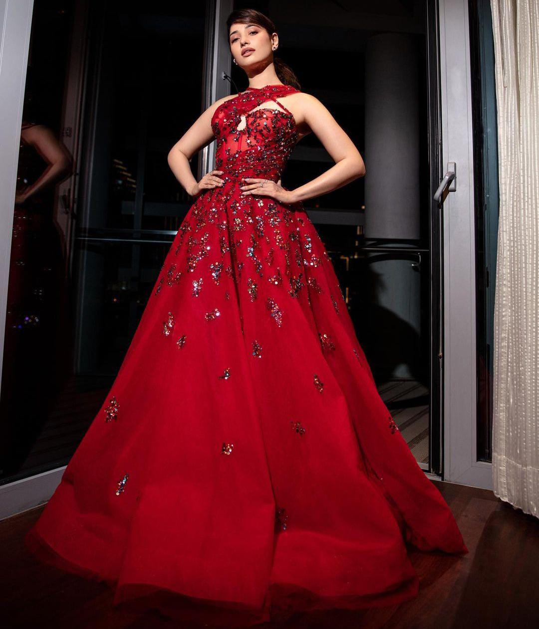 తాజాగా తమన్నా తన సోషల్ మీడియా అకౌంట్ లో కొన్ని అదిరిపోయే లుక్ లో ఉన్న ఫోటోలను పోస్ట్ చేసింది. తాజాగా తమన్నా తన సోషల్ మీడియా అకౌంట్ లో పోస్ట్ చేసిన ఫోటోలలో అదిరిపోయే హాట్ లుక్ లో ఉన్న రెడ్ కలర్ డ్రెస్ ను వేసుకొని , కొంటే చూపులతో కవ్విస్తూ ఉన్న ఫోటోలను తన సోషల్ మీడియా అకౌంట్ లో పోస్ట్ చేసింది. ఈ ఫోటోలు ప్రస్తుతం సోషల్ మీడియా లో వైరల్ గా మారాయి.