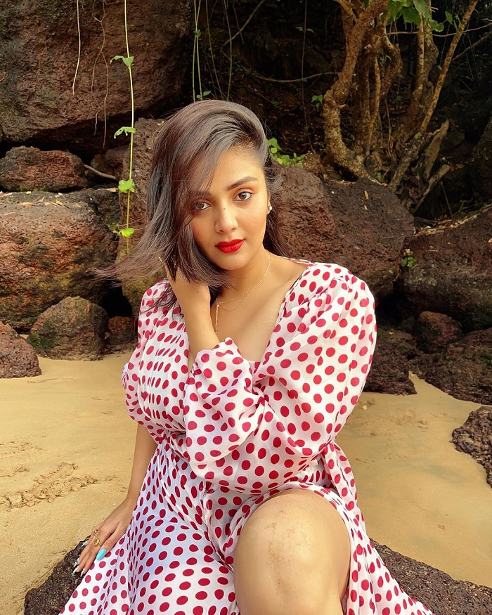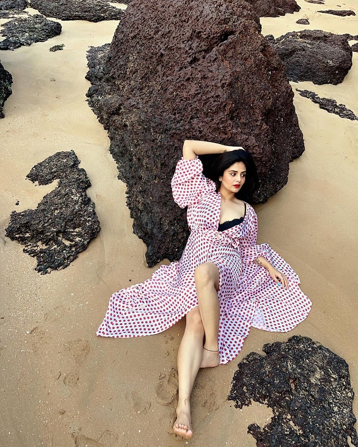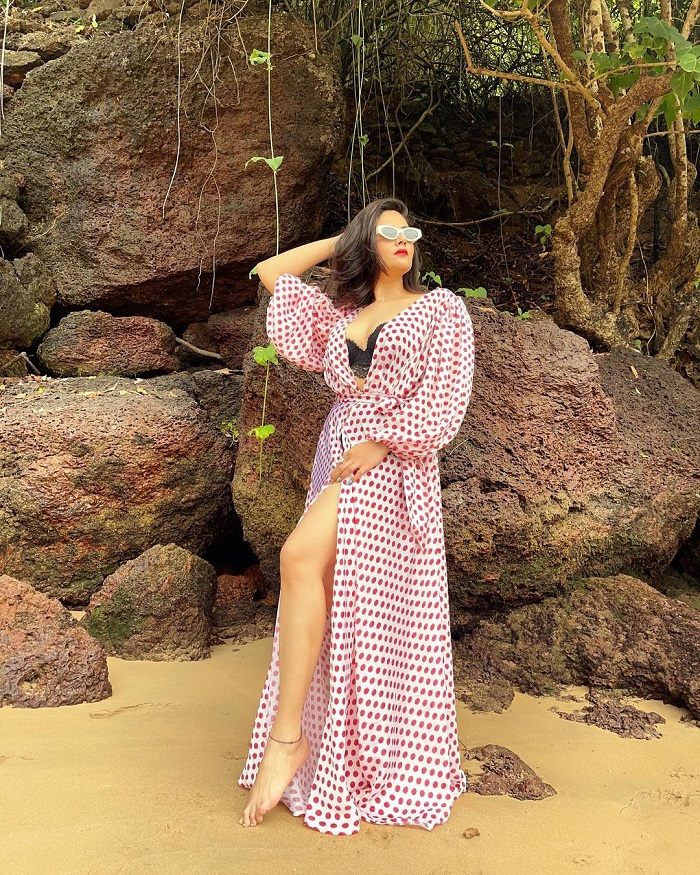 She posted her most recent images from a goa resort on Wednesday. She did a photo shoot on the beach while donning a polka-dotted gown over a black bikini. The images were labeled, "Polka dot or polka hot." The tv host is gaining thousands of instagram followers. She currently has more than 4 million instagram followers.
