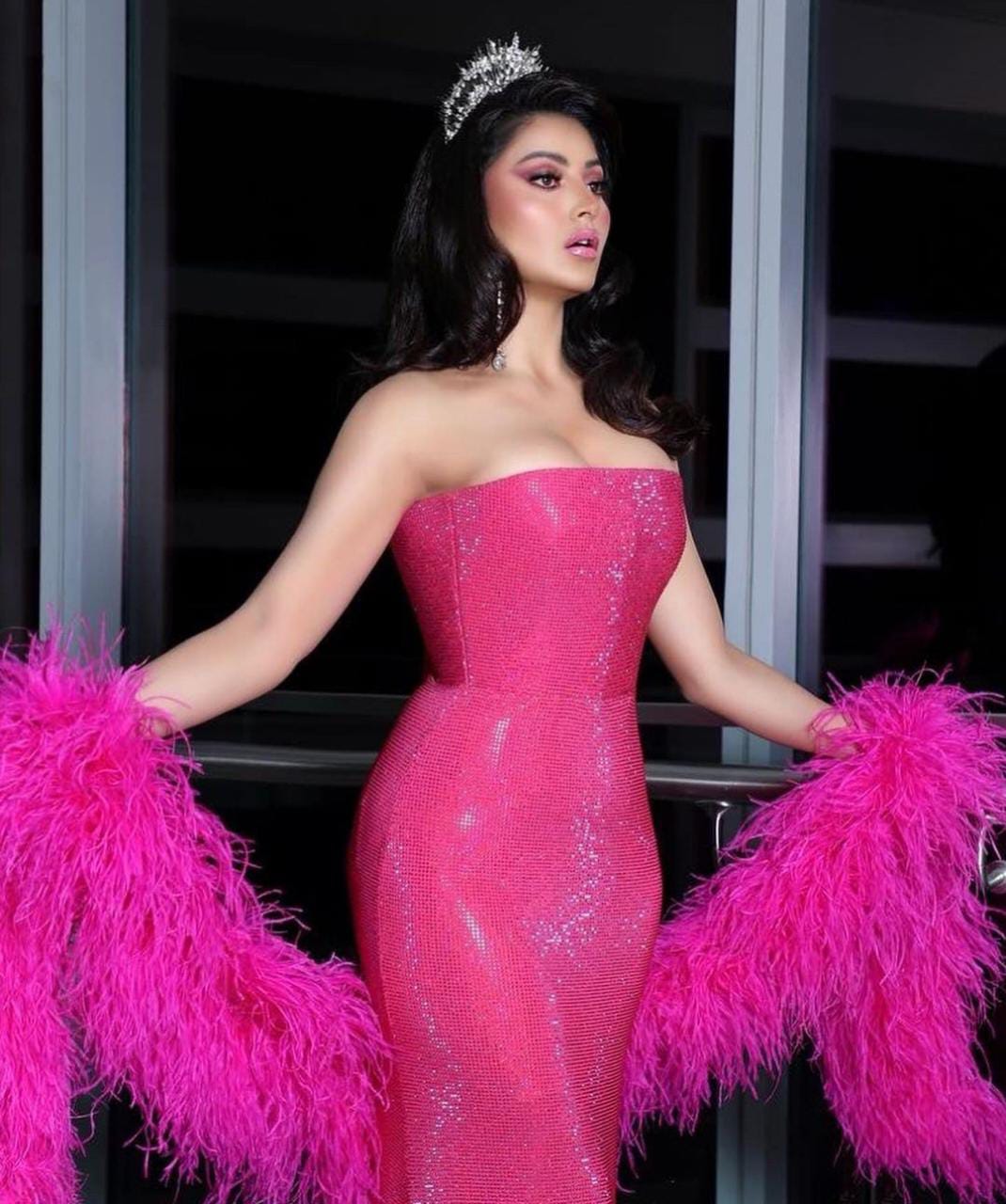 ఇలా ఈ ముద్దు గుమ్మ ప్రస్తుతం తెలుగు సినిమా ఇండస్ట్రీ ఫై ఫుల్ ఫోకస్ పెట్టినట్లు అర్థం అవుతుంది.  ఈ ముద్దుగుమ్మ తాజాగా తన సోషల్ మీడియా అకౌంట్ లో కొన్ని అదిరిపోయే హాట్ లుక్ లో ఉన్న ఫోటోలను పోస్ట్ చేసింది. తాజాగా ఊర్వశి రౌటేలా తన సోషల్ మీడియా అకౌంట్ లో పోస్ట్ చేసిన ఫోటోలలో అదిరిపోయే హార్ట్ లుక్ లో ఉన్న టైట్ పింక్ కలర్ డ్రెస్ ను వేసుకొని తన ఎద అందాలు ఫోకస్ అయ్యేలా ఫోటోలకు స్టిల్స్ ఇచ్చింది. ప్రస్తుతం ఈ ఫోటోలు సోషల్ మీడియాలో వైరల్ అవుతున్నాయి.