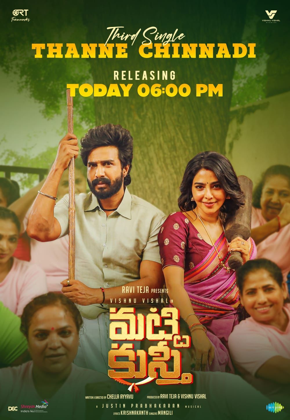 మూవీ విడుదల తేదీ దగ్గరపడడంతో ఇప్పటికే ఈ సినిమా నుండి చిత్ర బృందం కొన్ని ప్రచార చిత్రాలను మరియు కొన్ని పాటలను కూడా విడుదల చేసింది. వీటికి ప్రేక్షకుల నుండి అద్భుతమైన రెస్పాన్స్ లభించింది. ఇది ఇలా ఉంటే తాజాగా మట్టి కుస్తీ మూవీ యూనిట్ ఈ సినిమాకు సంబంధించిన మరో క్రేజీ అప్డేట్ ను తాజాగా విడుదల చేసింది. మట్టి కుస్తీ మూవీ యూనిట్ ఈ సినిమా నుండి మూడవ సింగల్ విడుదల తేదీని తాజాగా ప్రకటించింది. ఈ మూవీ నుండి "తానే చిన్నది" అనే పాటను ఈ రోజు సాయంత్రం 6 గంటలకు విడుదల చేయనున్నట్లు చిత్ర బృందం అధికారికంగా ప్రకటిస్తూ ఒక పోస్టర్ ను కూడా విడుదల చేసింది.