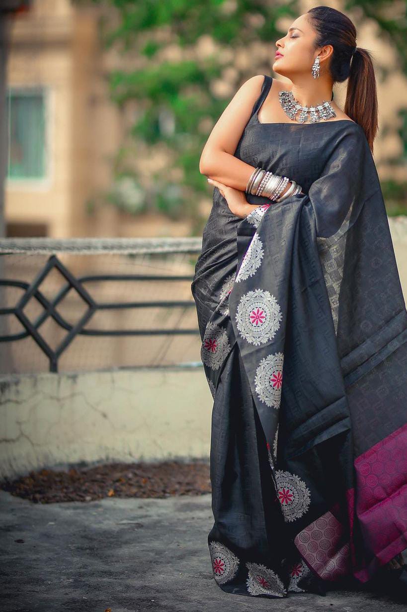 అందులో భాగంగా నందితా శ్వేత ఇప్పటి వరకు తన సోషల్ మీడియా అకౌంట్ లో పోస్ట్ చేసిన క్లాస్ గా మరియు డీసెంట్ గా ఉండే ఫోటోలు కూడా వైరల్ అయిన సందర్భాలు చాలానే ఉన్నాయి. ఇది ఇలా ఉంటే తాజాగా కూడా ఈ ముద్దు గుమ్మ తన సోషల్ మీడియా అకౌంట్ లో కొన్ని ఫోటోలను పోస్ట్ చేసింది. తన సోషల్ మీడియా అకౌంట్ లో నందిత శ్వేతా తాజాగా పోస్ట్ చేసిన ఫోటోలలో అదిరిపోయే క్లాస్  లుక్ లో ఉన్న బ్లాక్ కలర్ సారీ ని కట్టుకొని అందుకు తగిన బ్లాక్ కలర్ లో ఉన్న బ్లౌజ్ ను ధరించి క్లాస్ అండ్ డీసెంట్ లుక్ లో ఫోటోలకు స్టిల్స్ ఇచ్చింది. ప్రస్తుతం నందిత శ్వేతా కు సంబంధించిన ఈ క్లాస్ అండ్ డీసెంట్ లుక్ లో ఉన్న ఫోటోలు సోషల్ మీడియాలో వైరల్ అవుతున్నాయి.