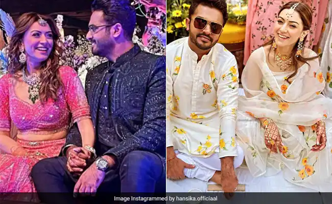 On december 4, hansika motwani wed her longtime partner Sohael Khaturiya in Rajasthan. Several images from her mehendi and sangeet ceremonies have gone viral online ahead of her wedding. Hansika and her fiancé Sohael are wearing matching floral white gowns for the Haldi ceremony. Sohael may be seen wearing sunglasses to complement his appearance, while Hansika accessorised her ensemble with dramatic jewellery.
