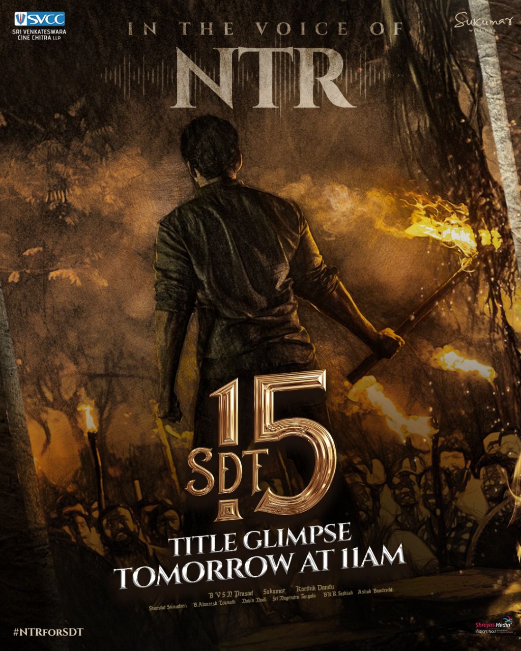 ఇప్పటివరకు ఈ సినిమాకు చిత్ర బృందం టైటిల్ ను ఫిక్స్ చేయలేదు. దానితో ఈ సినిమా సాయి దరమ్ తేజ్ కెరియర్ లో 15 వ మూవీ గా రూపొందుతున్న నేపథ్యం లో ఈ మూవీ షూటింగ్ ప్రస్తుతం "ఎస్ డి టి 15" అనే వర్కింగ్ టైటిల్ తో జరుగుతుంది. ఇది ఇలా ఉంటే కొన్ని రోజుల క్రితమే ఈ మూవీ యూనిట్ ఈ సినిమా నుండి డిసెంబర్ 7 వ తేదీన టైటిల్ గ్లి విడుదల చేయనున్నట్లు అధికారికంగా ప్రకటించింది. నిన్న ఈ మూవీ యూనిట్ ఈ సినిమా టైటిల్ గ్లిమ్స్ కు యంగ్ టైగర్ జూనియర్ ఎన్టీఆర్ వాయిస్ ఓవర్ ఇవ్వనున్నట్లు అధికారికంగా ప్రకటించింది. తాజాగా ఈ మూవీ యూనిట్ మరో అప్డేట్ ను విడుదల చేసింది. ఈ మూవీ యొక్క టైటిల్ గ్లిమ్స్ ను రేపు ఉదయం 11 గంటలకు విడుదల చేయనున్నట్లు అధికారికంగా ప్రకటిస్తూ ఒక పోస్టర్ ను కూడా విడుదల చేసింది. ప్రస్తుతం ఈ మూవీ యూనిట్ విడుదల చేసిన ఈ పోస్టర్ సోషల్ మీడియాలో వైరల్ అవుతుంది.