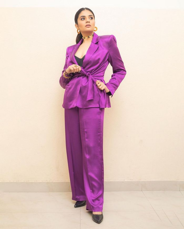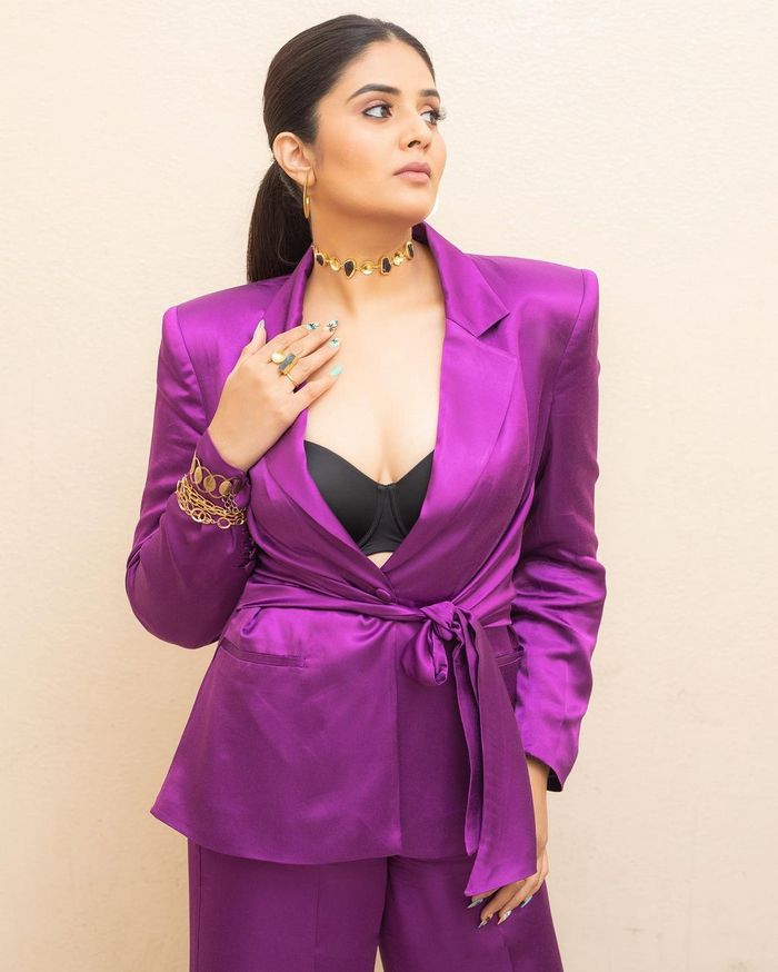 This lovely and gifted actress, a cum anchor noted for her animated performances. To the joy of her followers, she wore a shimmering couture blouse with shimmering pants. The actress looks really lovely in her creative outfit, and the pointed black heels only enhance her beauty. Her feminine aura was accentuated by the ear earrings and her tied-back hair. sreemukhi has a lengthy career ahead of her because she is the most alluring woman on both the big and small screens.