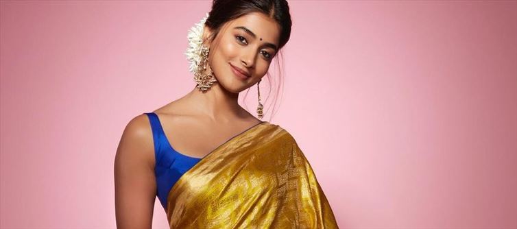 అందులో భాగంగా తాజాగా పూజా హెగ్డే తనకు సంబంధించిన కొన్ని ఫోటోలు తన సోషల్ మీడియా అకౌంట్ లో పోస్ట్ చేసింది. తాజాగా మోస్ట్ బ్యూటిఫుల్ హీరోయిన్ లలో ఒకరు అయినటు వంటి పూజా హెగ్డే అదిరిపోయే లుక్ లో ఉన్న గోల్డ్ కలర్ సారీ ని కట్టుకొని ... బ్లూ కలర్ లో ఉన్న స్లీవ్ లెస్ బ్లౌజ్ ను ధరించి అదిరిపోయే యాంగిల్స్ లో ఫోటోలకు స్టిల్స్ ఇచ్చింది. ప్రస్తుతం పూజా హెగ్డే కు సంబంధించిన ఈ ఫోటోలు సోషల్ మీడియాలో వైరల్ అవుతున్నాయి.