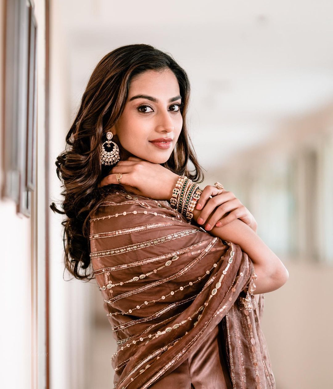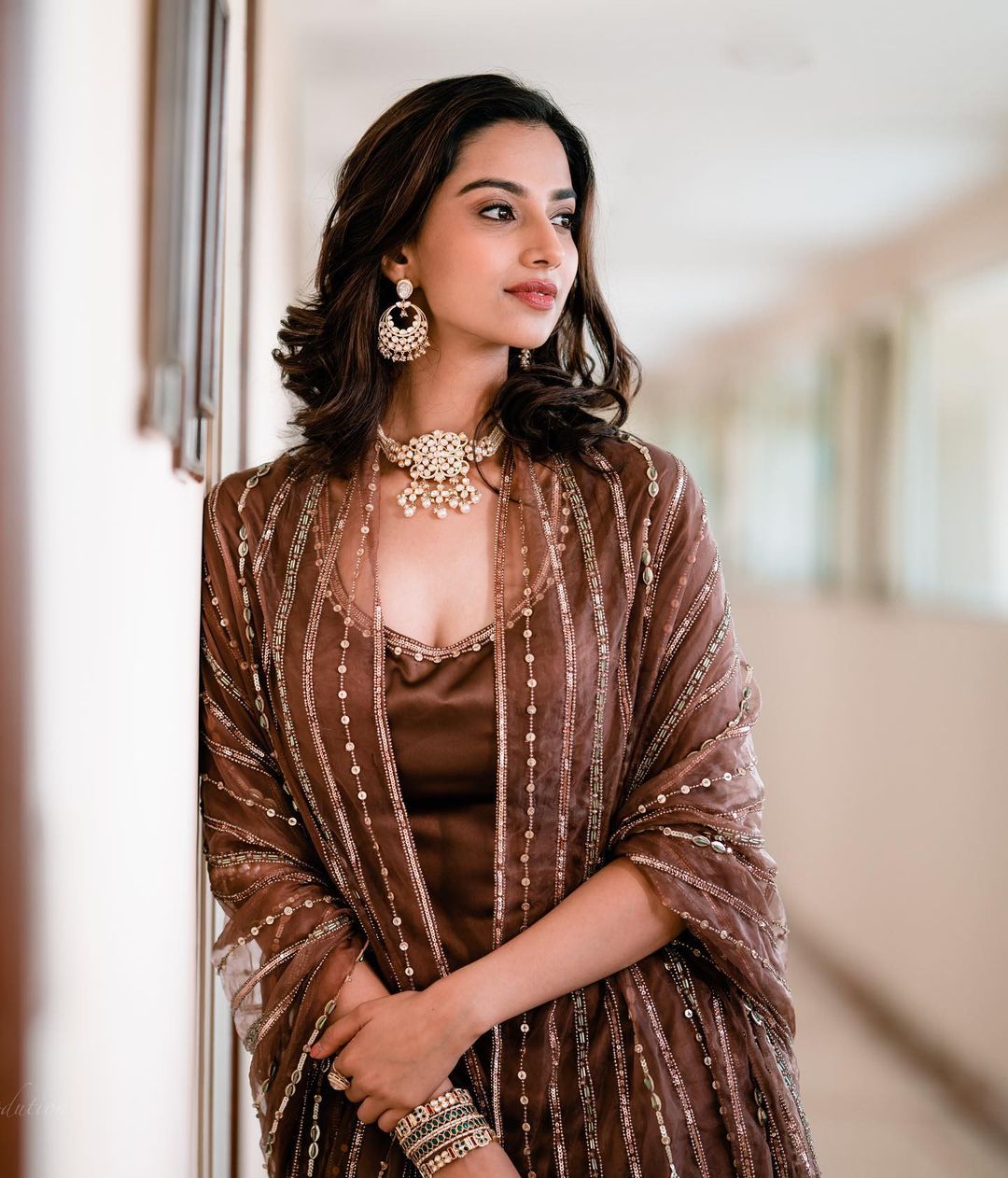 ఇలా వరుస సినిమా లతో ఫుల్ జోష్ లో దూసుకుపోతున్న ఈ ముద్దు గుమ్మ తాజాగా తన సోషల్ మీడియా అకౌంట్ లో కొన్ని ఫోటోలను పోస్ట్ చేసింది. తాజాగా మీనాక్షి చౌదరి తన సోషల్ మీడియా అకౌంట్ లో పోస్ట్ చేసిన ఫోటోలలో చాక్లెట్ కలర్ లో ఉన్న డ్రెస్ ను వేసుకొని , తన ఏద అందాలు ఫోకస్ అయ్యేలా ఫోటోలకు స్టిల్స్ ఇచ్చింది. మీనాక్షి చౌదరి కి సంబంధించిన ఈ ఫోటోలు సోషల్ మీడియాలో తెగ వైరల్ అవుతున్నాయి.
