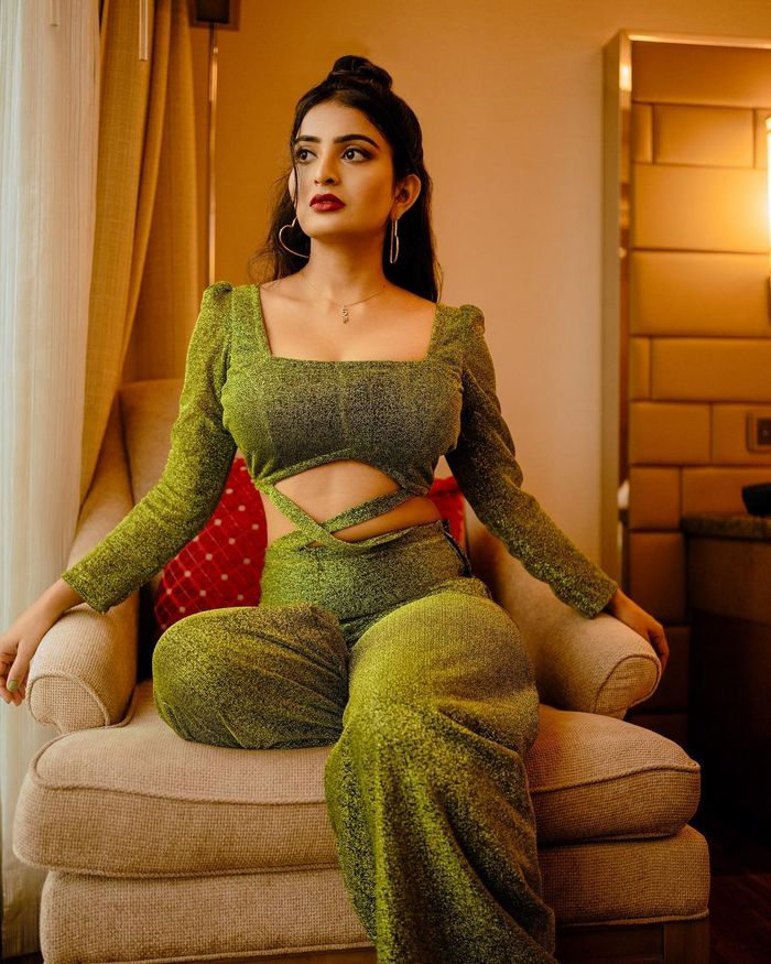 This is the most recent in a run of photos in which she is clad in a body-hugging green dress with just enough ventilators scattered throughout to show off her wow factor. To the delight of her fans and admirers, this native telugu beauty actually defeats several bollywood actresses with a flawless physique and facial attributes. She is presenting herself in line with the fashion, and now it is up to the filmmakers to find a role for this stunning and gifted actress.