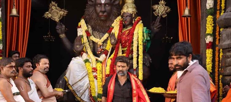 Now that a working still from the movie has been released, it already exudes such great energy. It is well known that Balayya, a fervent follower of Lord narasimha Swamy, feels Simha's sentiments. We get to see the star dressed to the nines in Black and that fierce-looking red Kanduva.
