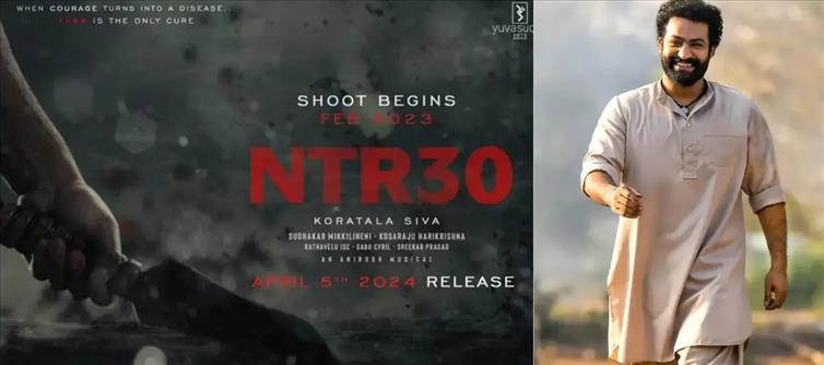 As we previously said, the production studio announced the release date for NTR30 on its twitter account this morning. Produced by sudhakar Mikkilineni under Yuvasudha Arts and hari Krishna K of ntr Arts, the film currently lacks a title. Sabu Cyril has been hired as a production designer, and R ratnavelu has been named director of photography. anirudh ravichander will write the music for this next movie, and Sreekar prasad will serve as the project's editor.