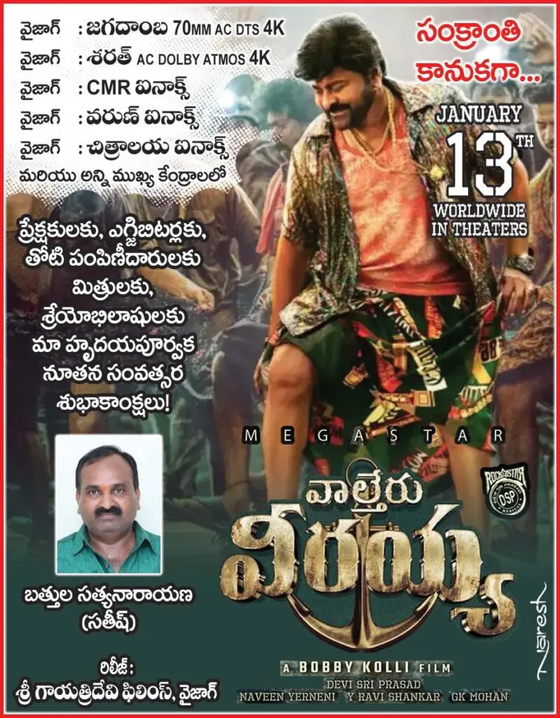 He is currently making good on his statements in Vizag. Waltair Veerayya is releasing on two single screens, whereas Veera simha Reddy is sadly only releasing on one single screen. varasudu is opening on five single screens.